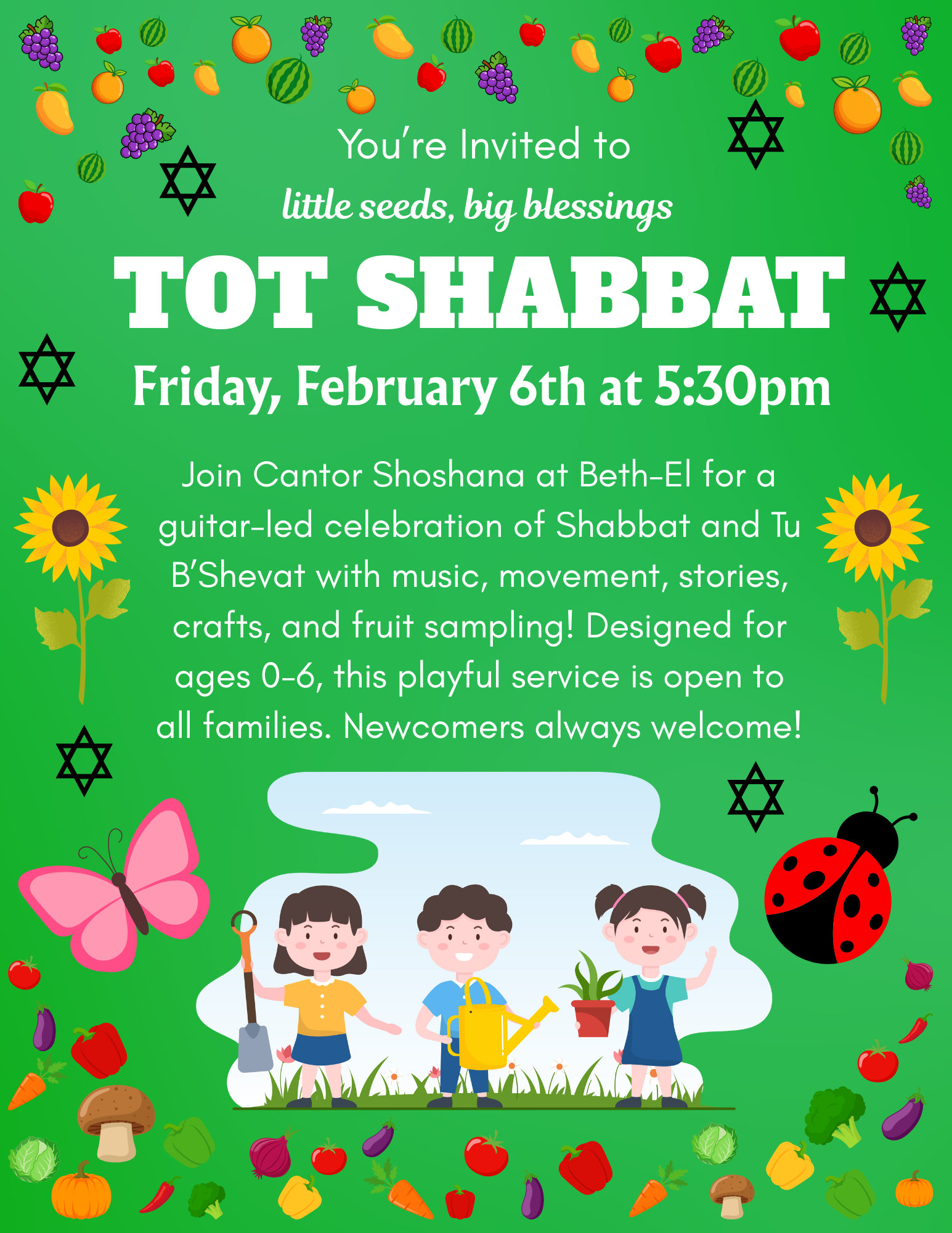 Please join Cantor Shoshana at Beth-El for a guitar-led celebration of Shabbat and Tu B’Shevat.