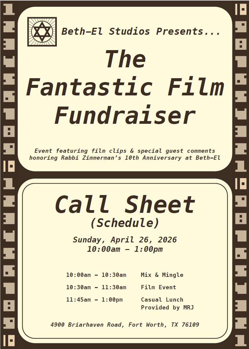 A movie themed event featuring clips from some of your favorite films… films with Jewish content, themes, actors, writers, musicians and more.